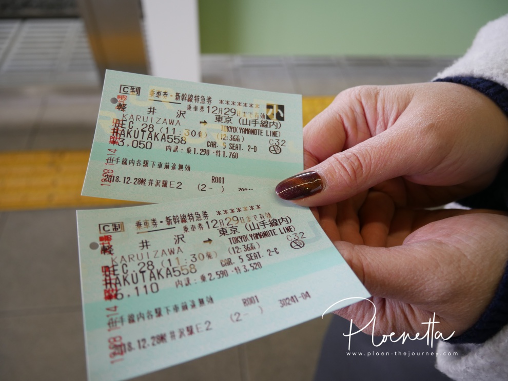 จาก Karuizawa – Kawaguchiko ไม่มีรถไฟตรง เราจะต้องนั่ง Shinkansen ไปลงโตเกียวก่อน จากนั้นก็นั่งรถไฟแบบช้า ๆ ยิงยาวสองชั่วโมงถึง Kawaguchiko (ซึ่งเรามีบัตร Wide pass แล้ว เราจะใช้จากโตเกียวไปคาวากูจิโกะค่ะ)