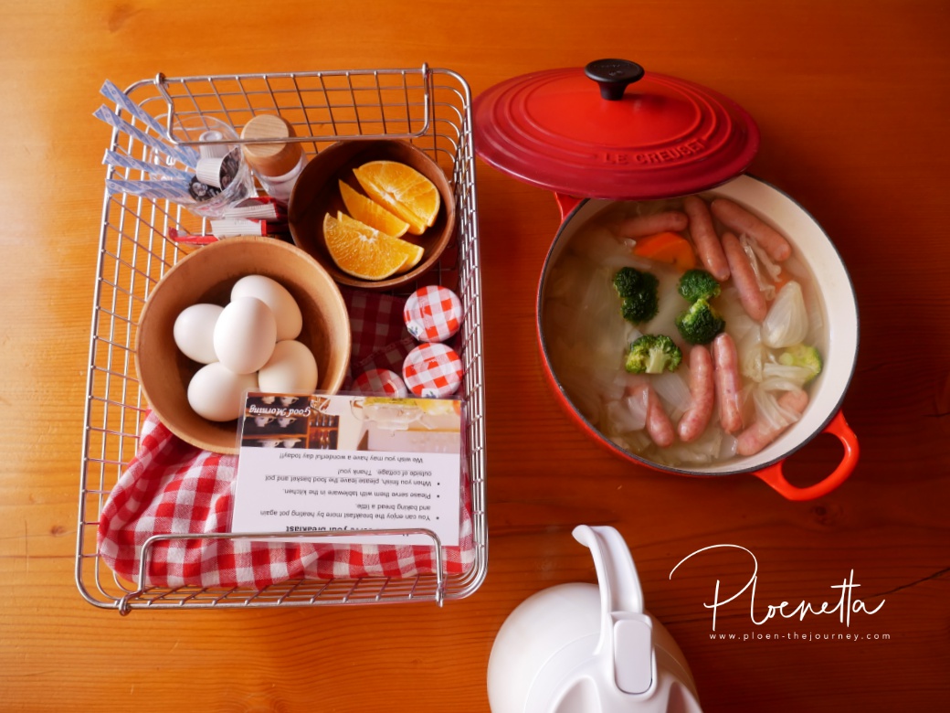 เราเลือกได้จะไปทานอาหารที่ลอบบี้หรือสั่งมาทานที่ห้อง ก็ต้องเลือกสั่งมาทานที่ห้องนะคะ จะได้บรรยากาศกระท่อมน้อย ๆ ได้ฟีลมาก ๆ เลยค่ะ เลือกว่าจะให้มารอบไหนได้ โดยเริ่มตั้งแต่ 7.30-9.00 ค่ะ เราก็เลือกสัก 8.00 ค่ะ เพราะเดี๋ยวต้องเช็กเอาท์