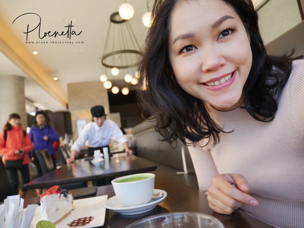 สั่ง Matcha Latte กับขนมเค้กมาทาน ฟินมาก
