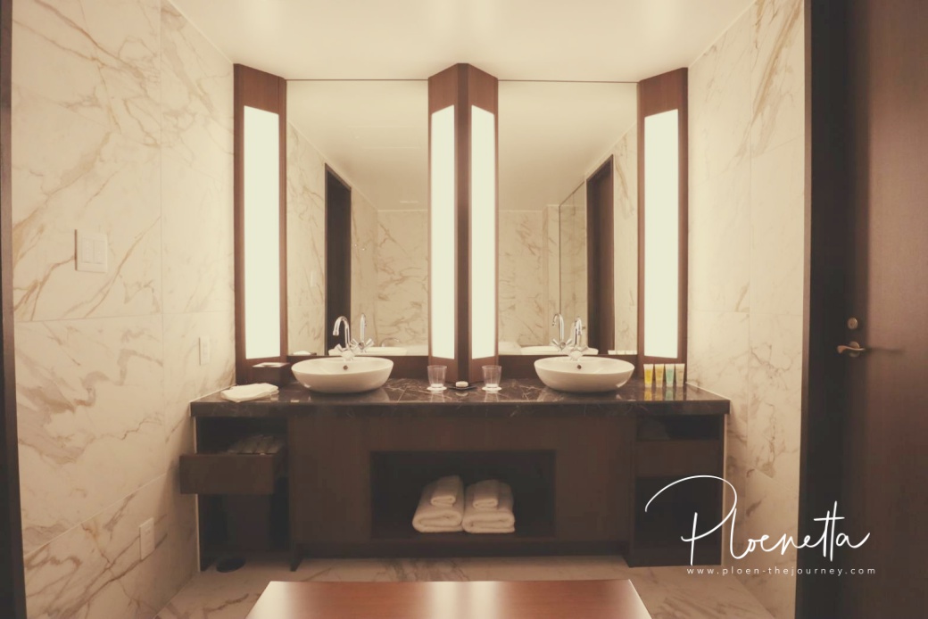 ห้องพักก็ไม่ใหญ่มาก แต่จัดพื้นที่ใช้สอยดีมากค่ะ มีอ่างล้างหน้าแยกจากห้องน้ำ และห้องอาบน้ำกับห้องส้วมแยกกัน