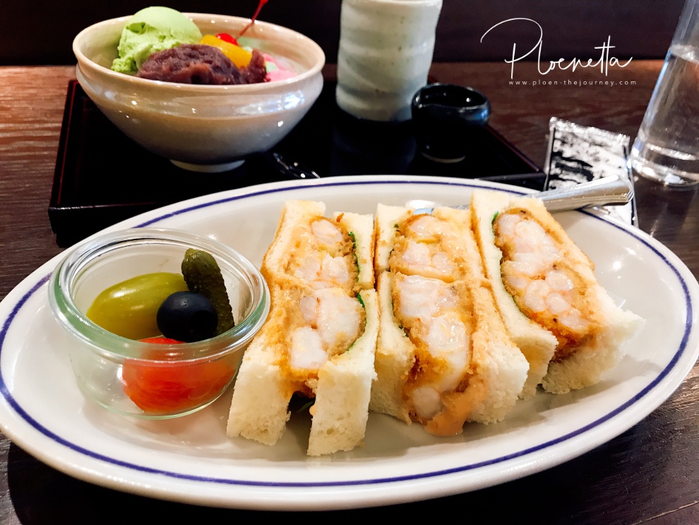 ร้านชื่อ Ginza Kimuraya สั่งแซนวิชกุ้งทอด อร่อยมากกกกกกกก และด้วยความที่โมโหมัทฉะปิดเราเลยสั่งไอติมชาเขียวถั่วแดงมากินซะเลย