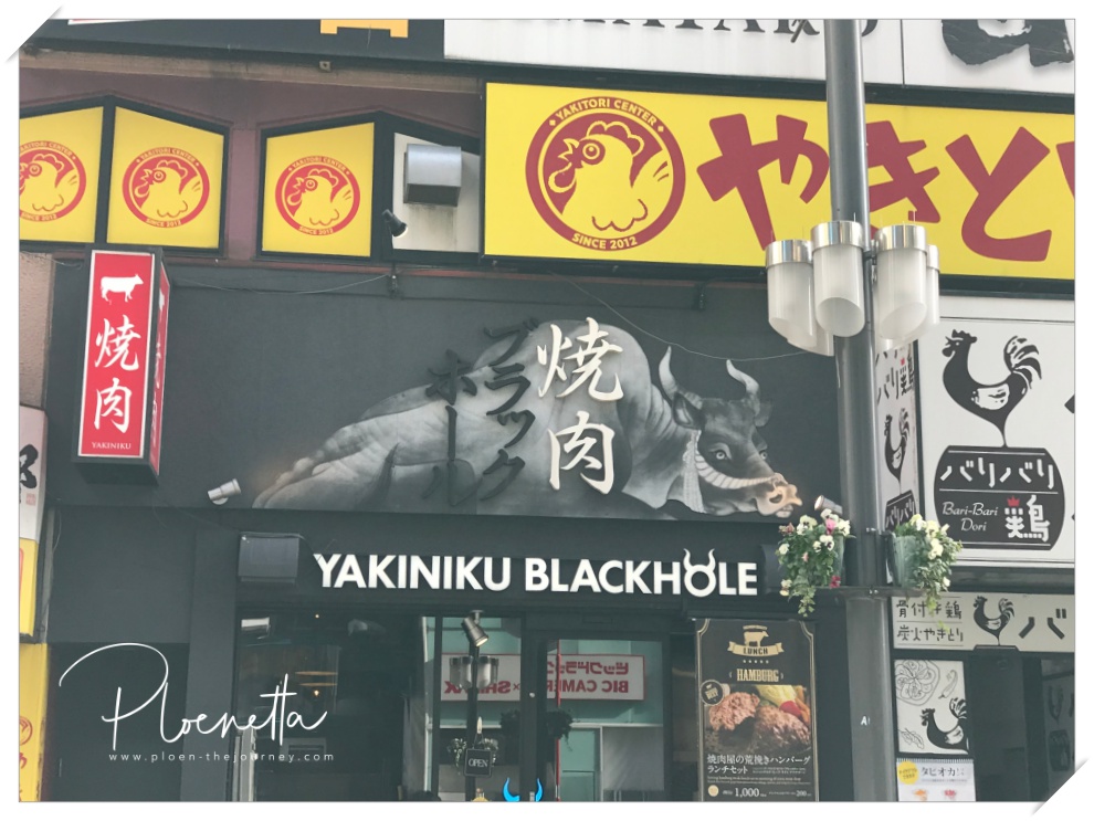 เรานั่งกลับมาลงชินจุกุ เดินย้อนกลับมาเก็บของที่โรงแรม พี่สาวที่กลับจากเลโก้แลนด์ก็ชวนไปทานร้านเนื้อย่างที่เค้าไปทานเมื่อวานนี้ (แต่เราไม่ได้ไป) บอกอร่อยมาก อยู่ตรงถนนหน้าโรงแรมนี่แหละ ชื่อ Yakiniku Blackhole