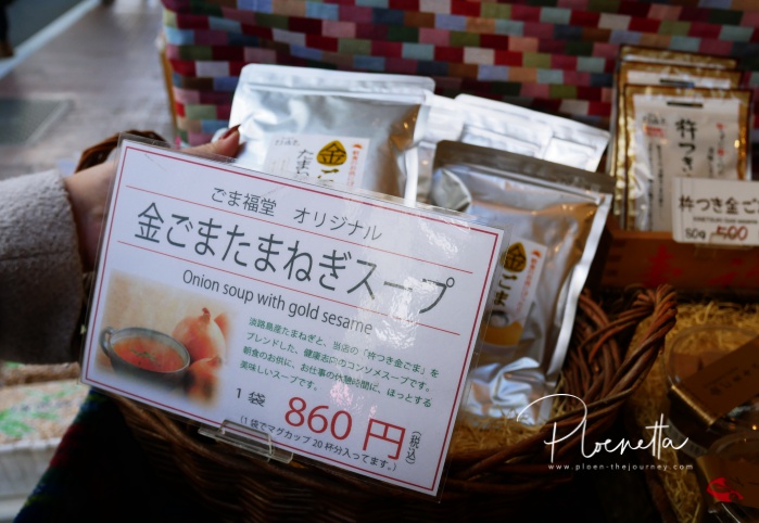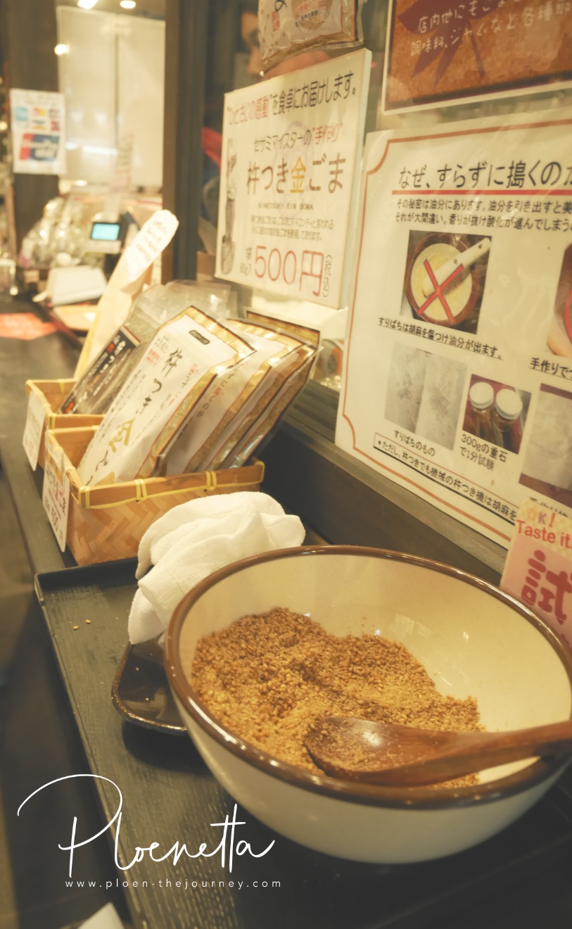 แล้วเราก็จะมาแวะร้านงาที่เล็งๆ ไว้ตอนเดินเตร่ไปมารอบแรก เป็นร้านที่ขายอะไรเกี่ยวกับงา ๆ หมดเลย กะจะมาซื้อของฝากคนอื่น และฝากตัวเองที่นี่นี่แหละเพราะชอบงา กับเคยทานร้านงา ๆ คล้ายๆ แบบนี้ที่ Takayama อร่อยมากก็เลยเหมารวมว่าที่นี่จะอร่อย (ก็อร่อยจริงๆ) ชื่อร้าน Goma Fukudo