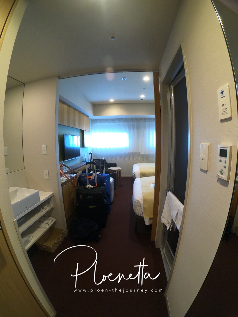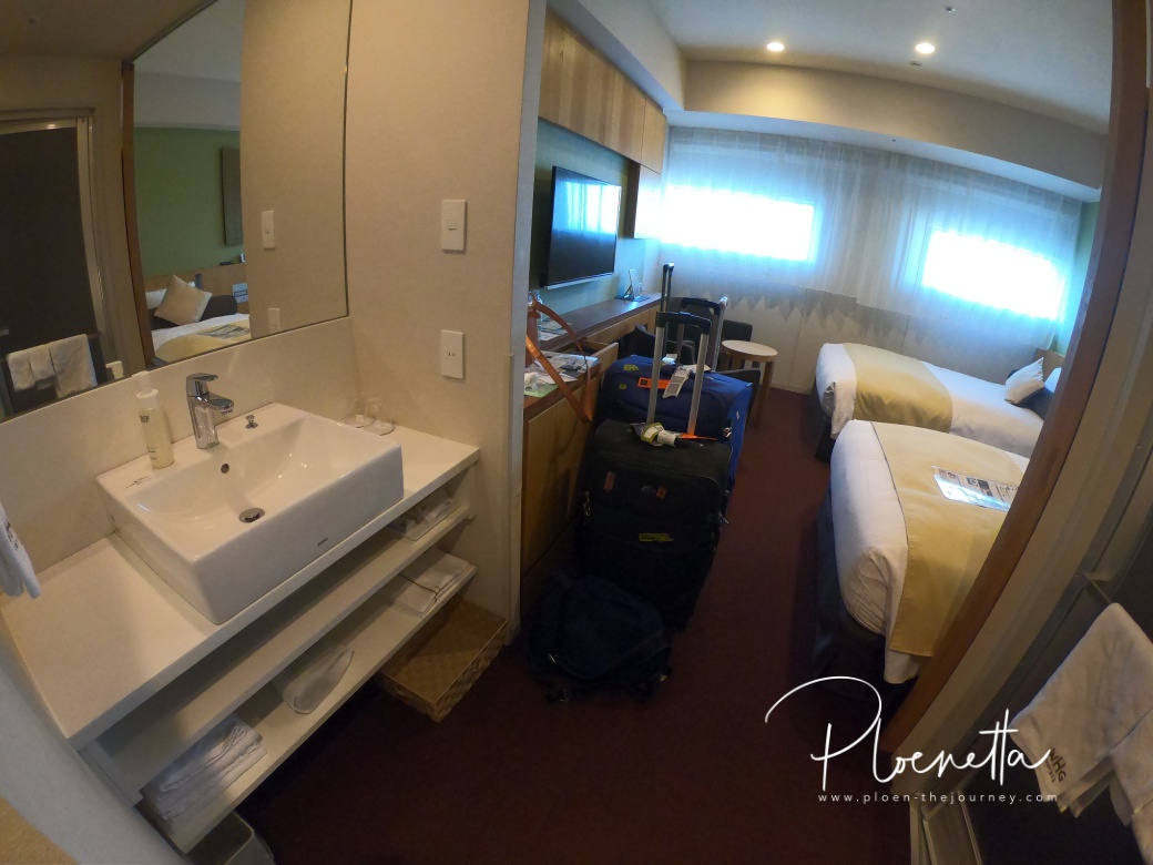 เราจองห้องพัก 2 ห้องนะคะ ของครอบครัวพี่สาว 1 ห้อง (พ่อแม่ลูก) และตัวเพลินกับคุณป้าอีก 1 ห้องค่ะ วิวห้องพักก็จะเห็นตึกสูงโตเกียวชัดมาก