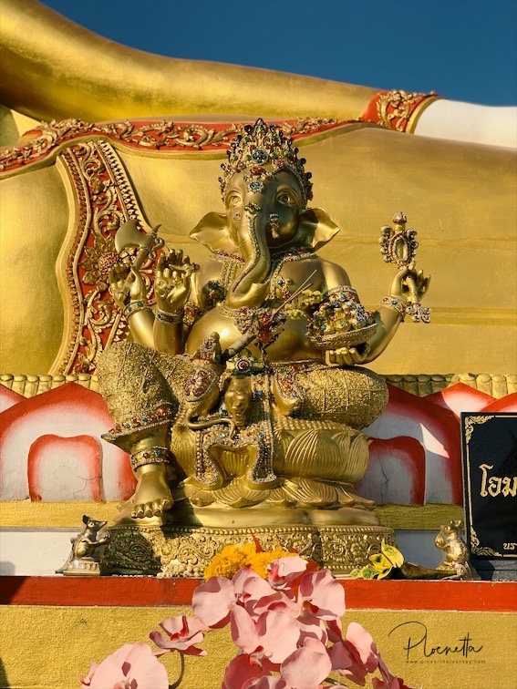 ด้านหน้าพระปรางไสยาสน์มีองค์พระต่างๆ เช่นเจ้าแม่กวนอิม พระพิฆเณศ พระสิวลี ฯลฯ