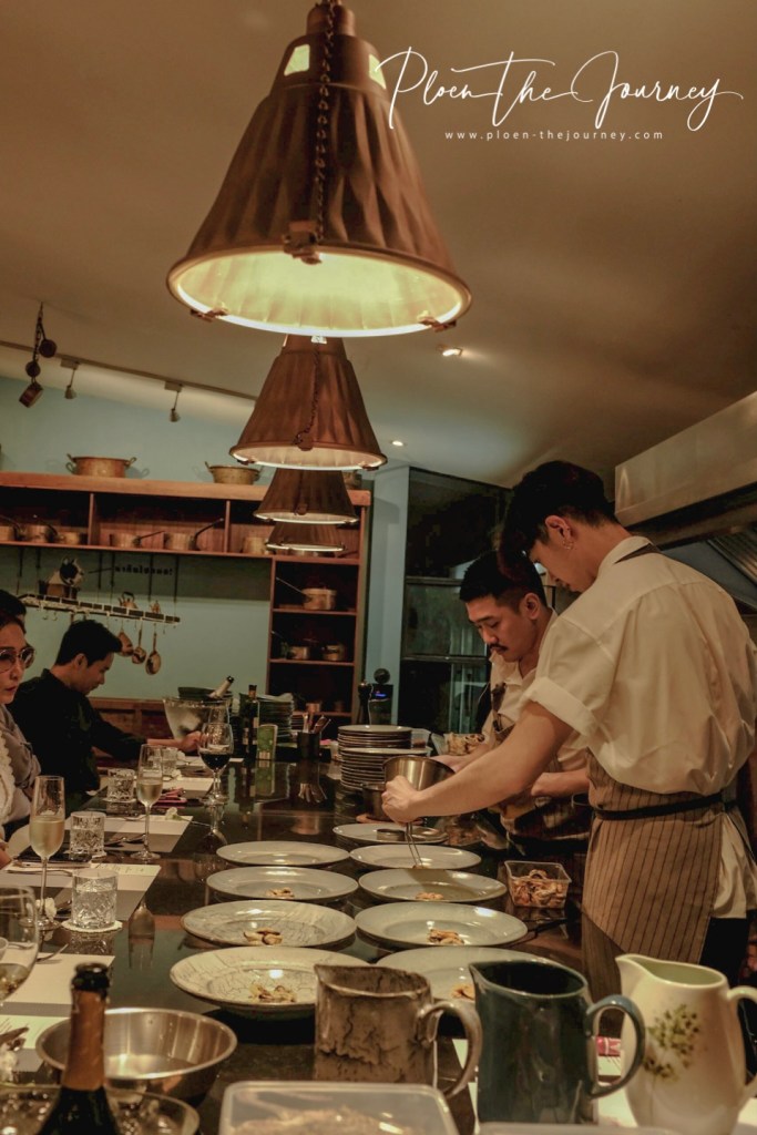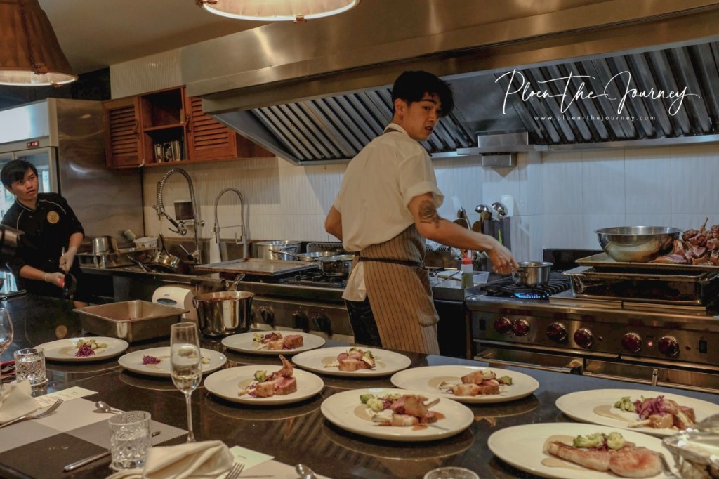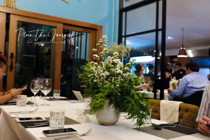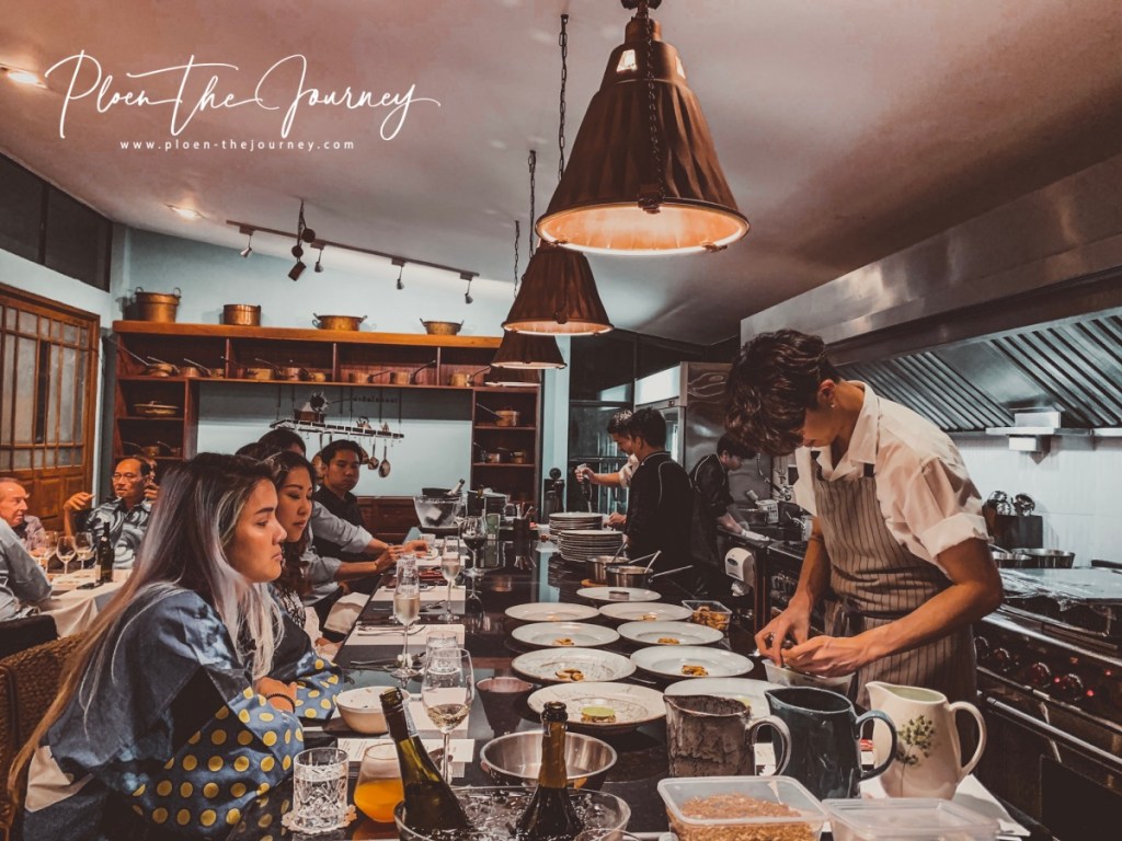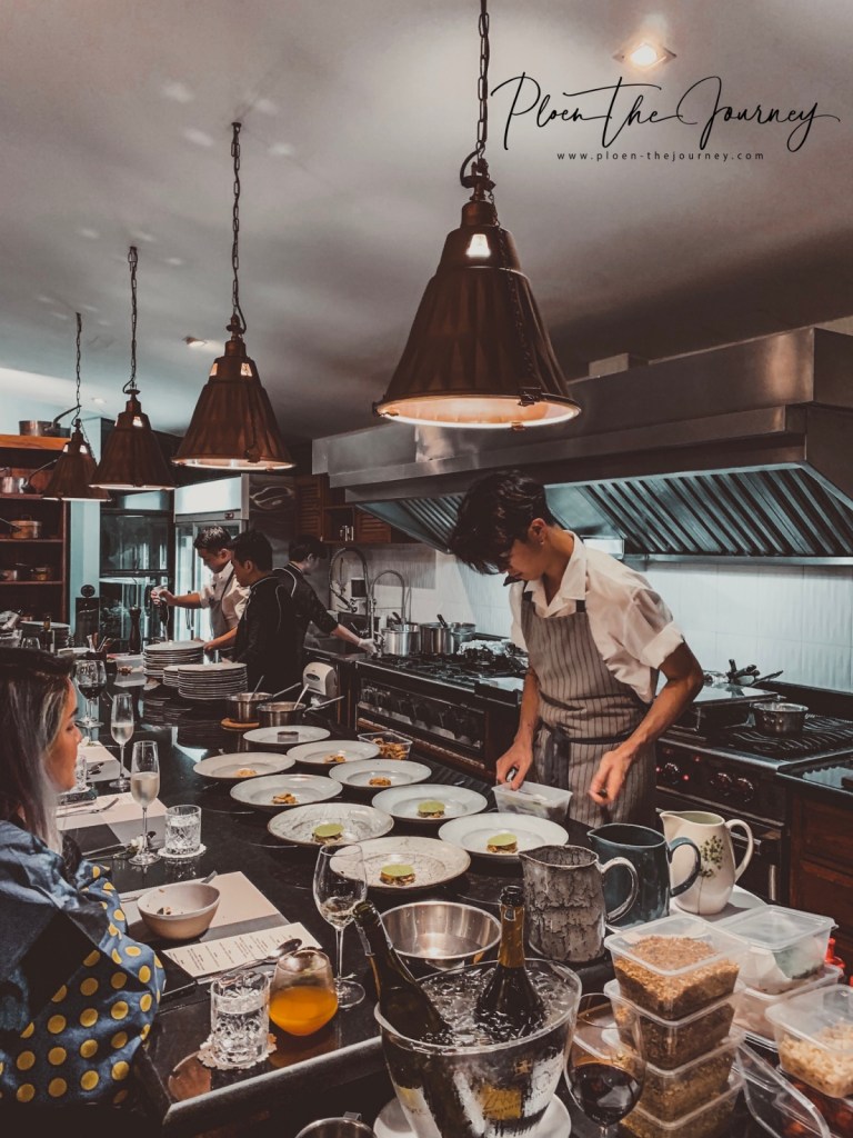 ดินเนอร์จะเริ่มเสิร์ฟตอน 19.00 น. ก็ทุ่มนิดๆ ค่ะเริ่มเสิร์ฟ เพลินได้นั่งมุมที่เห็นครัวอยู่ไกลๆ