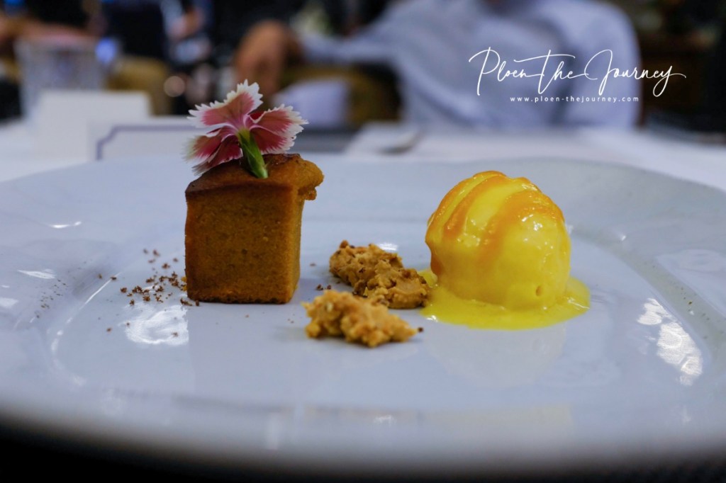 ของหวานอีกจานก่อนจบมื้ออร่อยอันยาวนานค่ะ ตัวนี้คือ Orange Almond Cake, Marian Plum Ice-cream, White Chocolate Crumble คือเค้กส้มอัลมอนด์ ทานคู่กับไอติมมะยงชิด! มันชื่นใจมากๆๆๆๆๆ อยากจะทานแต่ไอติมเพิ่มสักลูกเลย ตัวเค้กหวานหน่อยแต่ทานกับไอติมมะยงชิดก็ตัดกันดี มีครัมเบิ้ลให้กรุบกรอบเล่นส่งท้าย