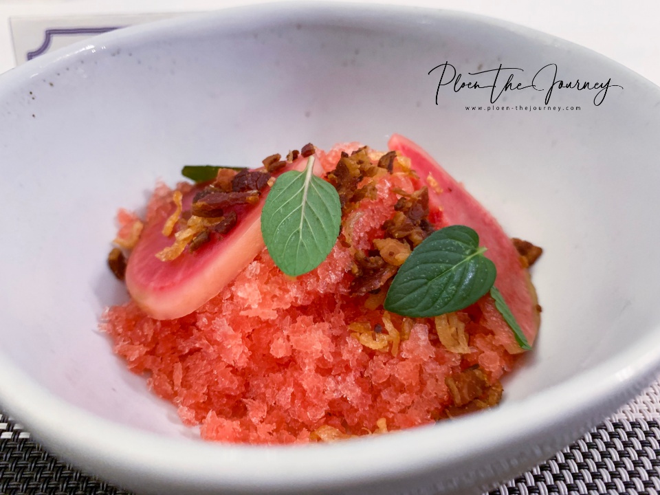 Water Melon Ice, Dash Jelly, Bacon, Crispy Shallot