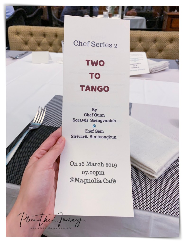 เนื่องจากเมื่อคืนเพลินไปร่วมทานอาหารแบบ Chef Table ที่จัดโดย Magnolia Cafe Chiang Mai ซึ่งเค้าจะจัดดินเนอร์แบบเชฟเทเบิ้ลอยู่เรื่อยๆ ครั้งนี้เป็น Chef Series2 # Two to Tango โดยจะมีเชฟกันน์ และเชฟเจ็ม จากรายการ Top Chef Thailand Season 2 มาทำอาหารให้เราทานในวันนี้