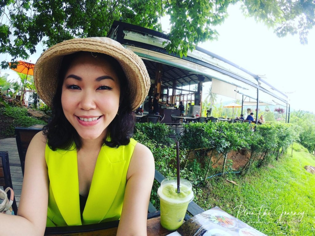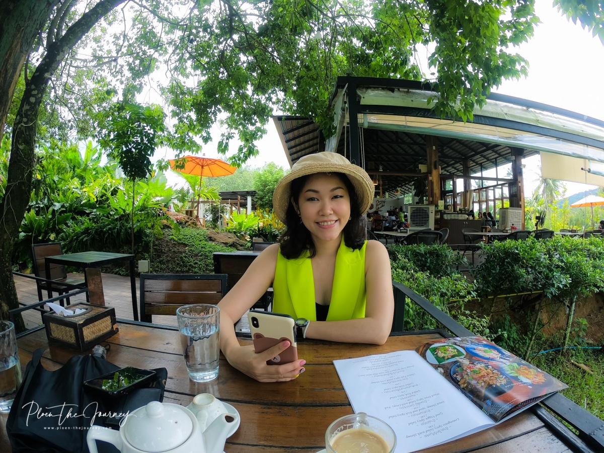 ฉันสั่งชาเย็นมาจิบ ๆ พอให้ชื่นใจ ถึงเป็นของโปรดแต่ไม่อยากทานเยอะ หยิบหนังสือมาอ่านรับลม สลับกับมองทิวทัศน์เขียวขจี สบายตา สบายใจมาก ๆ