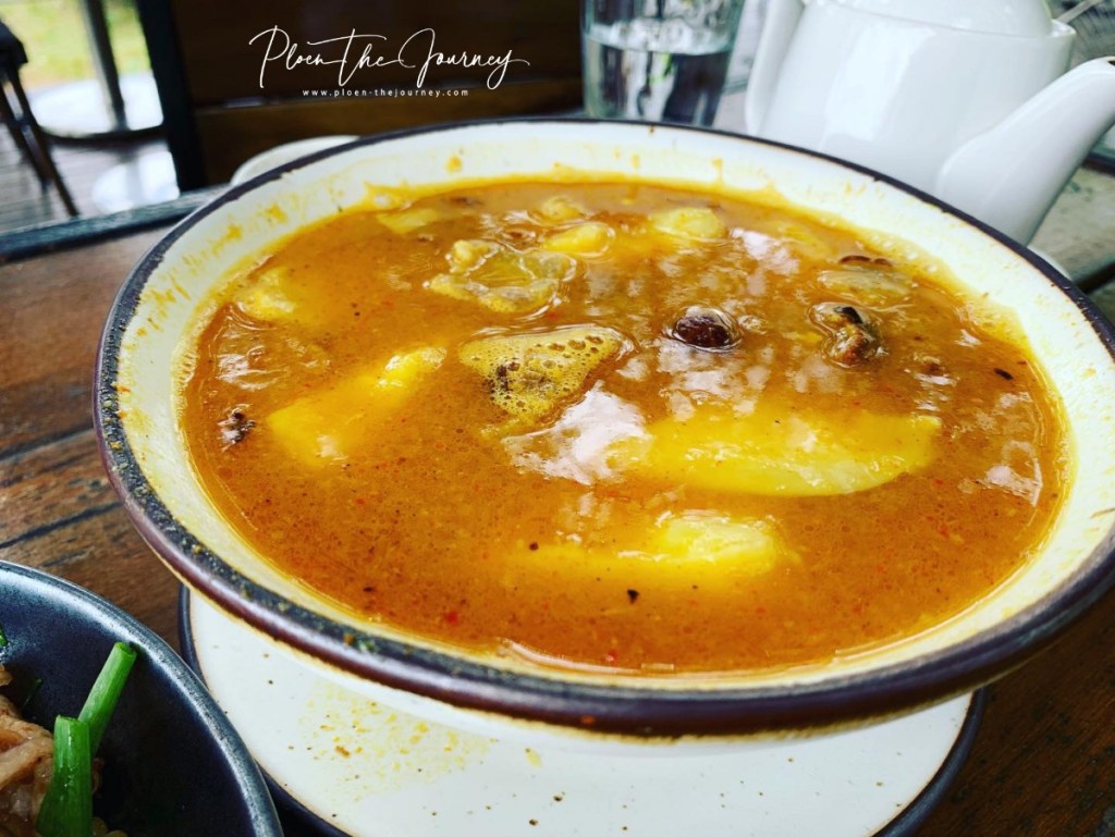 และแกงส้มทุเรียน ปกติฉันไม่ชอบทุเรียน แต่คิดว่าลองสักหน่อยไม่เสียหาย ปรากฏว่าอร่อยมาก ไม่เหม็นทุเรียนเลย และได้กลิ่นกับรสทุเรียนนิด ๆ อวลในแกงส้มกำลังพอดี พี่สาวบอกว่าปกติมาจะทานแบบใส่กุ้ง คราวนี้เลยลองสั่งแบบใส่หมูย่างตรัง ลองแล้วอร่อยไปอีกแบบ ใครมาแนะนำลองสั่งเมนูนี้เลยนะคะ
