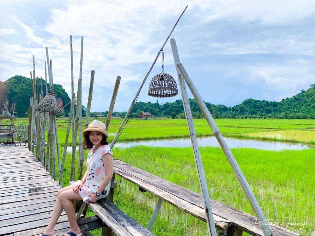 ตัดมาที่ภาพจริง ไปเมืองใต้ แต่ไม่ได้เหยียบทะเล มีแต่ทุ่งนาป่าเขา และสายฝนโปรยปราย ไม่ได้เสาะแสวงหาหมูย่าง แต่นั่งอ่านหนังสือกลางวงล้อมขุนเขาและนาข้าว ราวกับอยู่เชียงใหม่