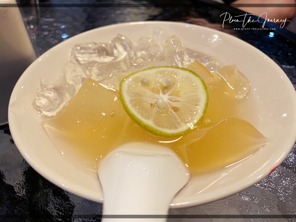 เนื่องจากหิวพอประมาณแต่ไม่อยากกินอะไรหนักเกินก็เลยสั่งโอ้เอ๋มะนาว ลักษณะเหมือนวุ้นเยลลี่ลอยน้ำแข็ง รสเปรี้ยวชื่นใจ ทานกับนักเก็ตไก่และกรือโป๊ะทอด แต่ละจานล้วนพูนเต็มที่ รวม 3 อย่างราคา 135 ฿ นับว่าไม่แพงเลยเทียบกับปริมาณ ถ้าอยู่กรุงเทพหรือเชียงใหม่รวม 3 จานนี้มีสิทธิ์แตะสองร้อย
