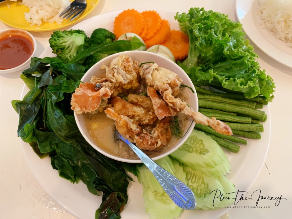 เราสั่งยำสาหร่ายทะเล ซึ่งก็คือสาหร่ายพวงองุ่นของโปรดฉันนั่นเอง ปูนิ่มทอดราดซอสมะขาม หอยโพงผัดฉ่า ปูม้ากวนน้ำปลา (ซึ่งก็คือปูไข่ดองซอสน้ำปลานั่นเอง) อร่อยทุกจาน คุ้มค่าคลอเรสเตอรอลที่กระฉูดขึ้นทุกคำ