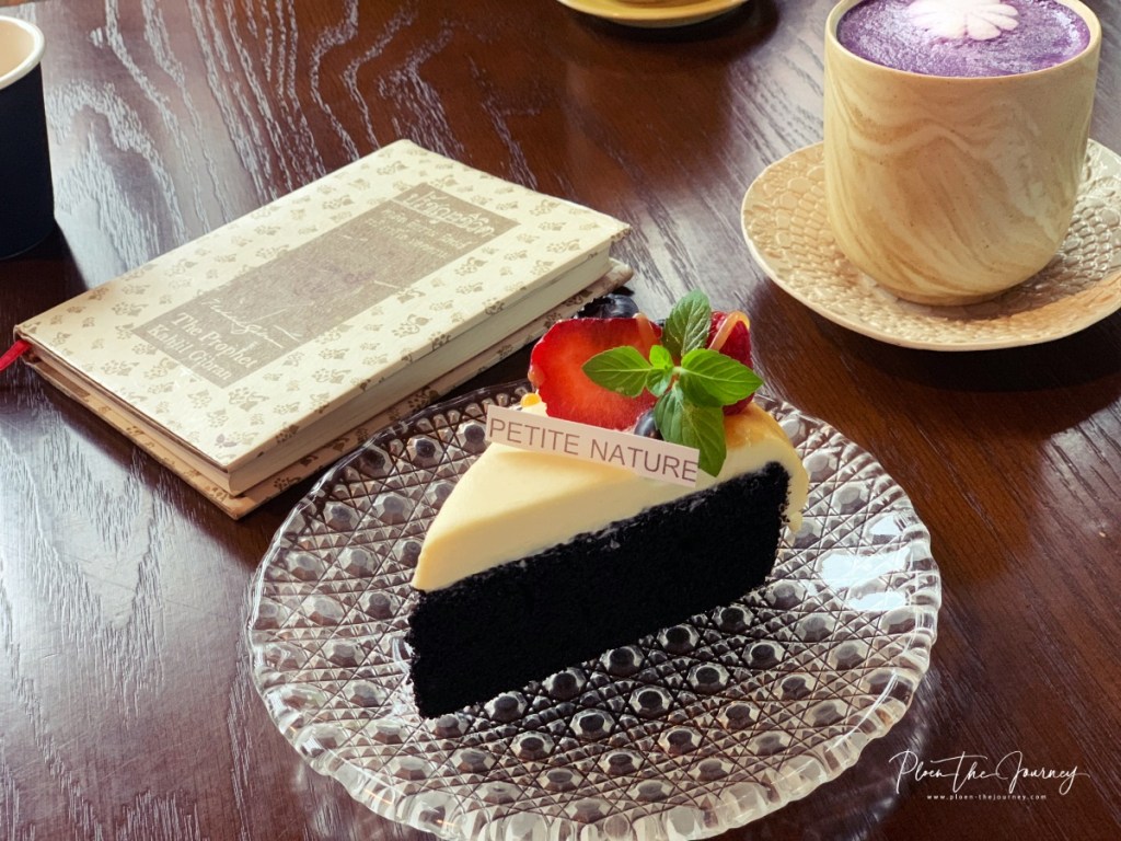 แค่เปิดประตูเข้าไปก็ได้กลิ่นขนมหอมโชยมาเลยข้างในเล็ก ๆ มีโต๊ะนั่งประมาณสามสี่โต๊ะ และมีโต๊ะทำงานคล้ายบาร์สำหรับให้มานั่งทำงานอีกโต๊ะนึง มีโซนขายถ้วยชามวินเทจสวยงาม ของที่ระลึก ด้านตรงข้ามเป็นชั้นหนังสือให้หยิบมานั่งอ่านได้ หนังสือก็เป็นหนังสือวรรณกรรมดี ๆ หลายเรื่องเลย ฉันก็เลยหยิบมานั่งอ่านเล่มนึง กินขนม จิบชา มองฝนโครม ๆ ข้างนอก