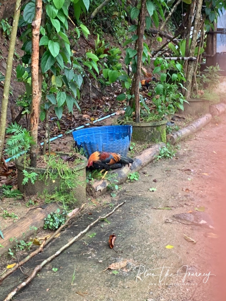 ลุงแกเล่าหลายเรื่องน่าสนใจ ทั้งเรื่องไก่ที่เราเห็นวิ่งกันเต็มลาน ลุงบอกว่าคนมักมาไหว้บนบานกันด้วยไก่ บางทีก็เอามาปล่อย พันธุ์สวย ๆ ทั้งนั้น บ้างก็เป็นไก่ป่าที่มาจากบนเขา มันเห็นว่ามาที่นี่ไม่มีมนุษย์ทำอันตรายก็มาอยู่ มันวิ่งแบบไม่กลัวคนเลย