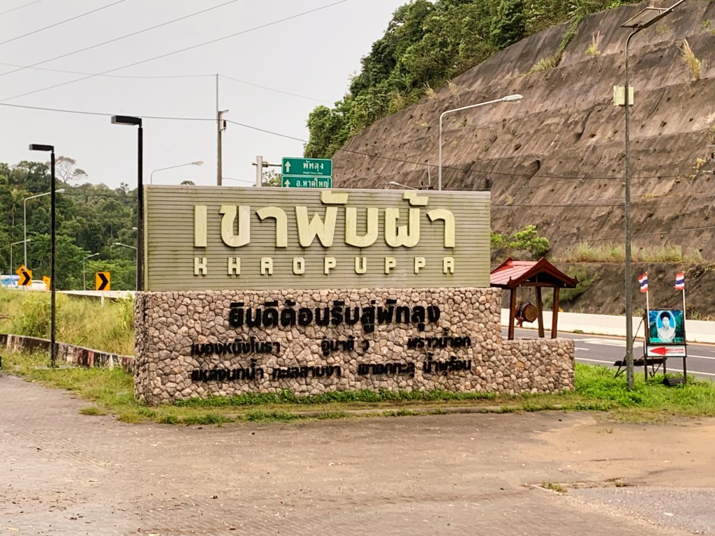 อ้อ… อย่างนี้นี่เอง เขาพับผ้าคือเทือกเขาทั้งพืดนั้นนี่เอง ป้ายเขาพับผ้าที่เราเลี้ยวมานี้เป็นจุดไหว้สักการะทวดหลักเขตของเขาพับผ้า