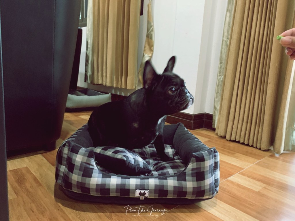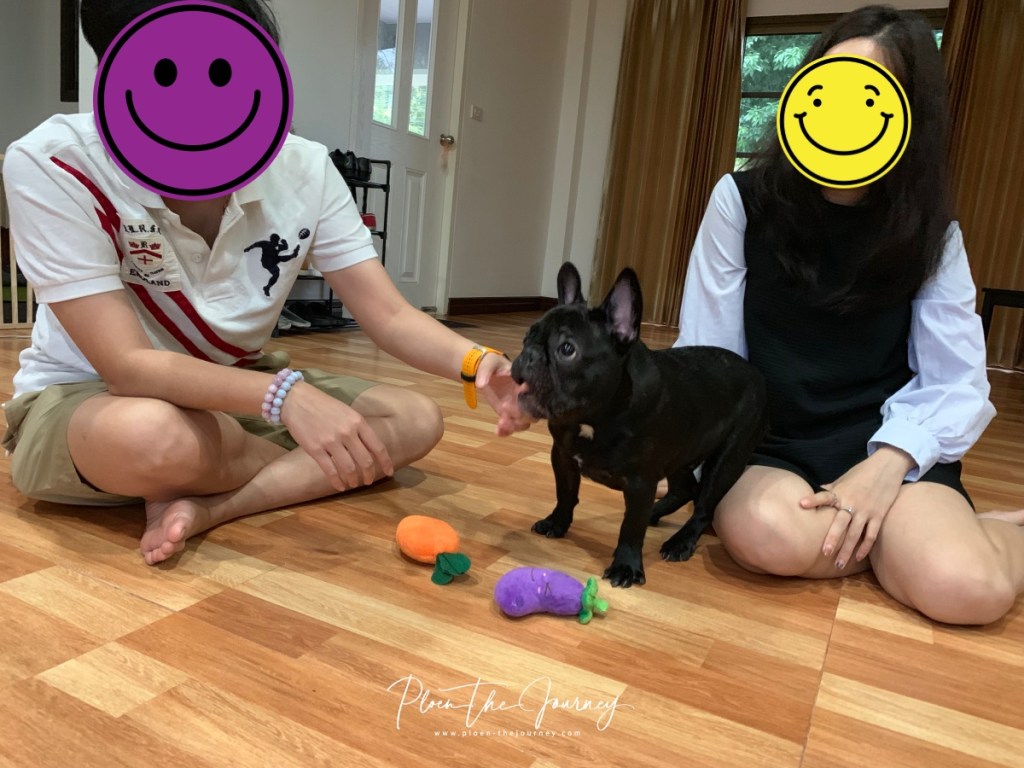 เมื่อกลับถึงบ้านยังเหลืออีกภารกิจที่ฉันอยากทำ นั่นก็คือการเล่นกับหมาของเพื่อนพี่ เห็นแต่ในคลิปจนชิน พอโทรถามว่าเพื่อนอยู่บ้าน พี่ก็พาฉันไปรู้จักเพื่อนและรู้จักหมาเพื่อน น้องเป็นหมาพันธุ์เฟรนช์บูลด๊อกสีดำชื่อกุนเชียง อายุ 4 เดือน ตาโตเหลียวมองไปมาด้วยความอยากรู้อยากเห็น แต่ก็ยังเหนียมหน่อย ๆ กับคนแปลกหน้าอย่างฉัน ที่สำคัญกุนเชียงดูฉลาดเอามาก ๆ เลยและยิ่งเป็นหมา well-trained ยิ่งฉลาดไปใหญ่ โตกว่านี้จะต้องล้ำมากแน่ ๆ