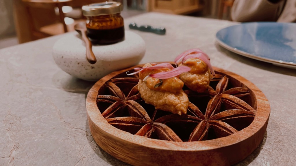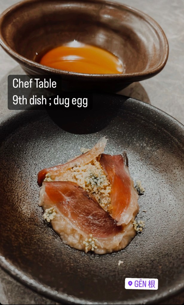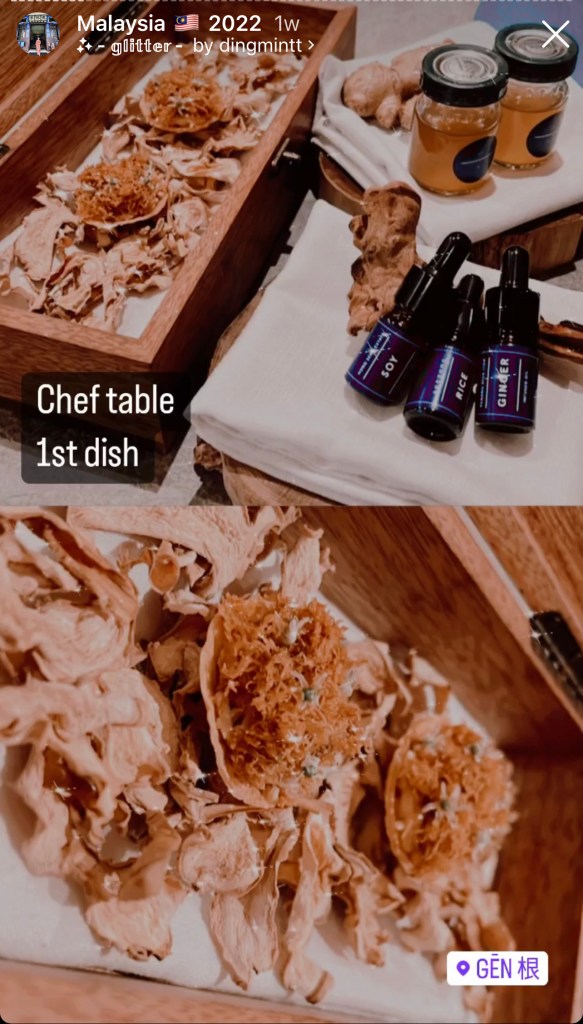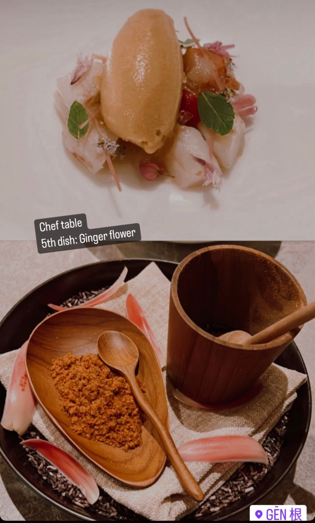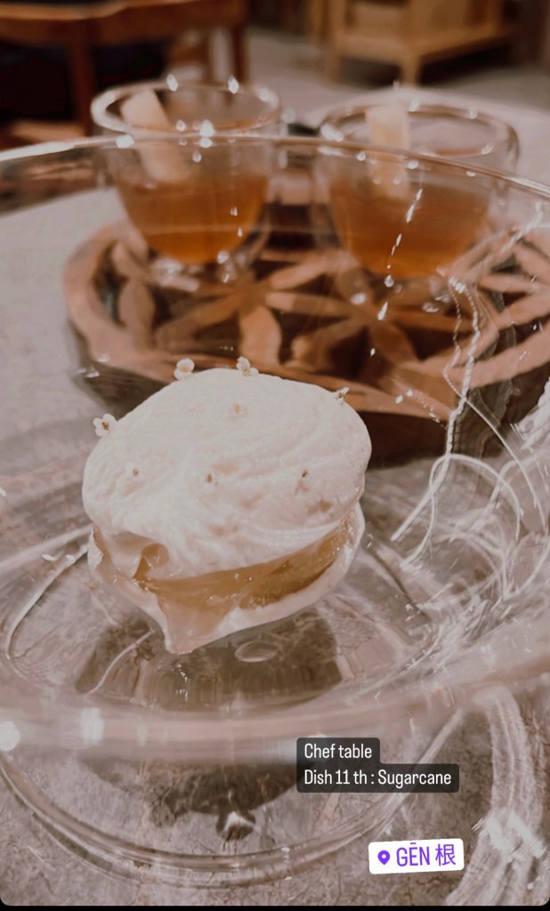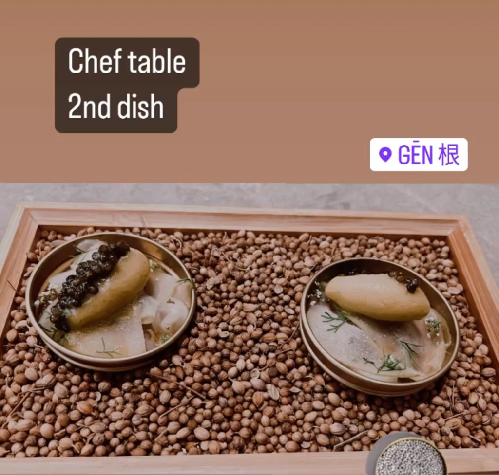 ร้านนี้ชื่อร้าน Gēn ที่แปลว่า “ราก” เน้นชูรสชาติดั้งเดิมของวัตถุดิบท้องถิ่นตามฤดูกาลออกมาในรูปแบบสร้างสรรค์ พิถีพิถัน มีทั้งหมด 13 คอร์สค่ะ แต่ละจานจะมีวัตถุดิบหลักที่นำมาชูให้เด่นเป็นตัวเอกของจานค่ะ