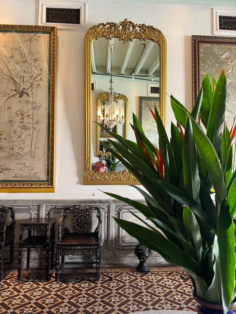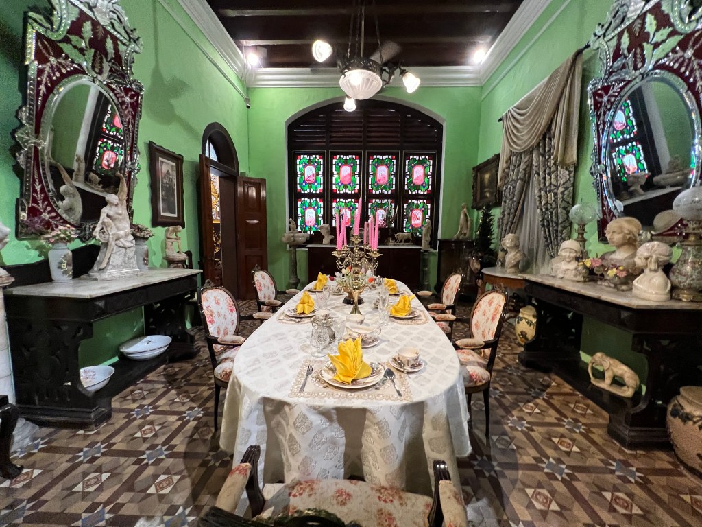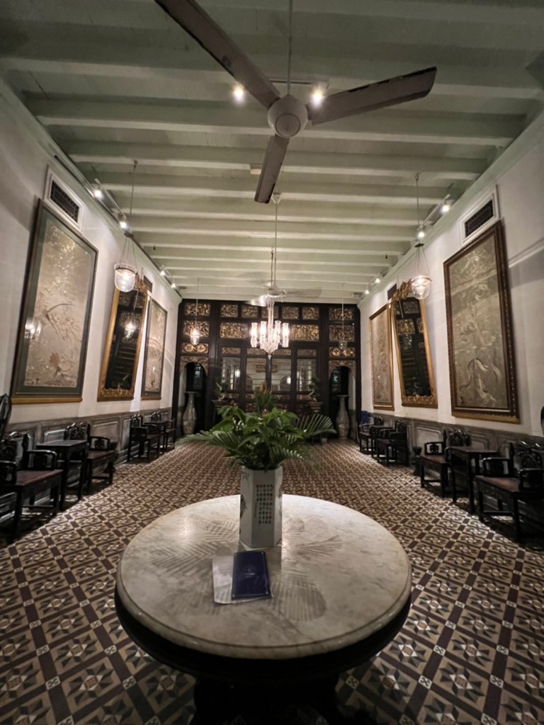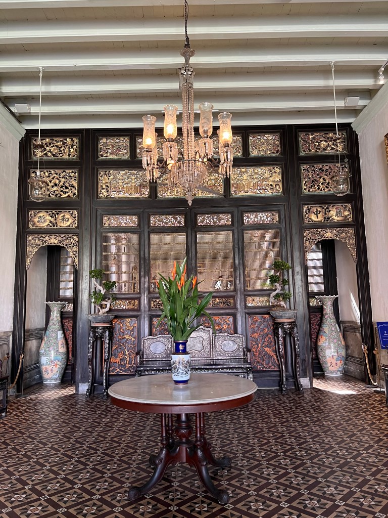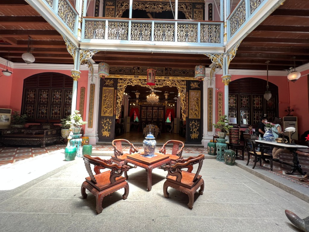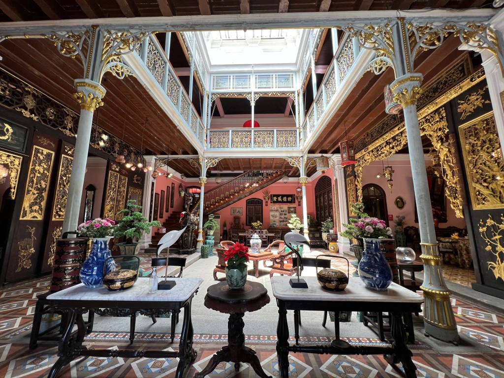 ส่วนประวัติของปีนังเปอรานากันแมนชันนั้น – ต้นกำเนิดมาจากคหบดีชาวเปอรานากันชื่อ ชุง เกง คี สร้างคฤหาสน์นี้ขึ้นในปี 1890 สร้างโดยผสมผสานศิลปะทั้งตะวันตกอย่างยุโรปและตะวันออกอย่างจีนเข้าด้วยกัน ตั้งแต่งานกระเบื้อง งานแกะสลัก พอชุงเกงคีเสียชีวิต คฤหาสน์ก็ตกทอดมายังรุ่นลูกหลานต่อ ๆ กันมาจนถูกทิ้งร้างในที่สุด จนกระทั่งมีเอกชนเข้ามาขอซื้อต่อในปี 1990 (ร้อยปีหลังจากสร้างพอดี) แล้วพัฒนาต่อเติมให้กลายเป็นพิพิธภัณฑ์ที่นำเสนอวิถีชีวิตมั่งคั่ง รุ่มรวย และขนบธรรมเนียมหลากหลายเป็นเอกลักษณ์ของชาวเปอรานากันผ่านสถาปัตยกรรมและโบราณวัตถุกว่าพันชิ้นที่อนุรักษ์ไว้อย่างดี ได้รับรางวัล Penang’s Heritage Mansion ด้วยค่ะ