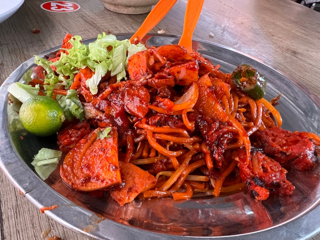 ด้วยความที่อยากลองหลายอย่าง เลยสั่ง Nasi Goreng จากร้านที่เคลมว่าดัง ได้รางวัลมาด้วย ซอสแดง ๆ รสชาติเหมือนผัดไทยหวาน ๆ
