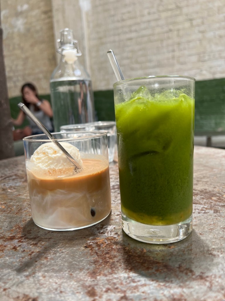 พอหนำใจเราก็เดินไปร้านมัทฉะ Niko Neko Matcha 2.0 ที่เมื่อวานปิดอีกหน คิวยาวมากแม่ เลยต้องรอสักแป๊บกว่าจะได้นั่ง ทั้งร้านที่นั่งมีนิดเดียวเองค่ะ ก็เลยจัดไป Matcha Latte นมข้าวโอ๊ต และ Houjicha แบบ no milk