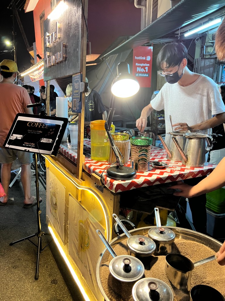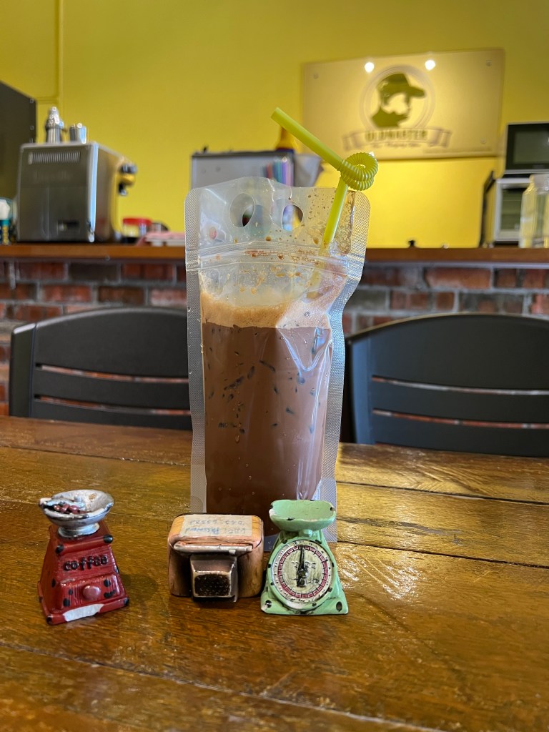 ไหว้พระเสร็จแล้วเดินออกมาชมเมืองซักพักก็แทบจะละลายด้วยความร้อน เลยกะจะไปอาบน้ำเปลี่ยนเสื้อผ้าที่โรงแรมอีกหนก่อนไปทาน Chef Table ที่จองไว้ ด้วยความที่ร้อนก็เลยขอแวะร้านกาแฟอีกนิดก่อนกลับ เดินเข้าร้านสีเหลืองสวยใน Armenian Street ชื่อ Old Master Coffee สั่งกาแฟโบราณเป็นถุงซีลเสียบหลอดไปค่ะ
