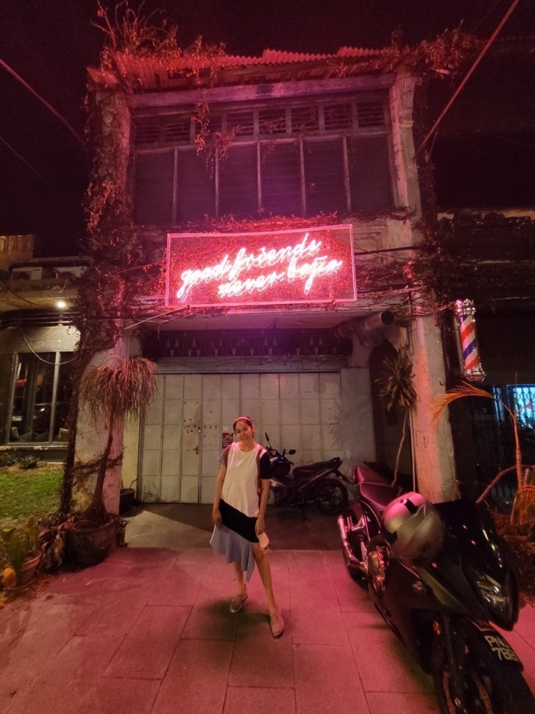 เนื่องจากมาถึงก็ดึกแล้ว จะนอนเลยก็รู้สึกยังไม่ได้เที่ยวเลย เพลินก็เลยเสิร์ชหาร้านเก๋ๆ ไปนั่งเล่นสักหน่อย อ่านรีวิวเรตติ้งก็มาลงตัวที่ร้าน Good Friends Never Bojito ก็นั่งแกรบไปค่ะ บรรยากาศดีมาก เราสั่ง Smokey Leng Chai, Fifty Red Dates, Something Corny ค่ะ กำลังครึ้มๆดี