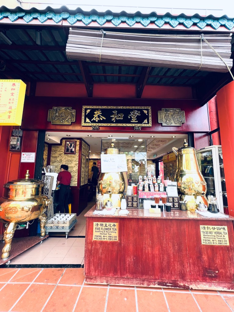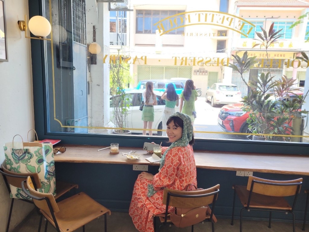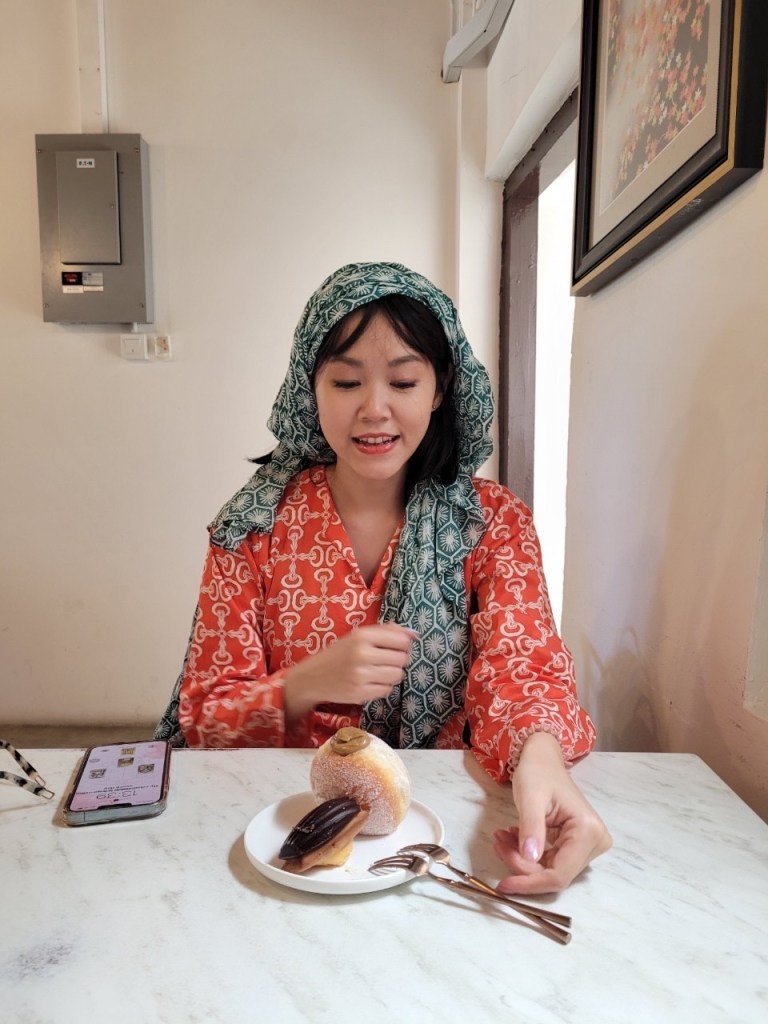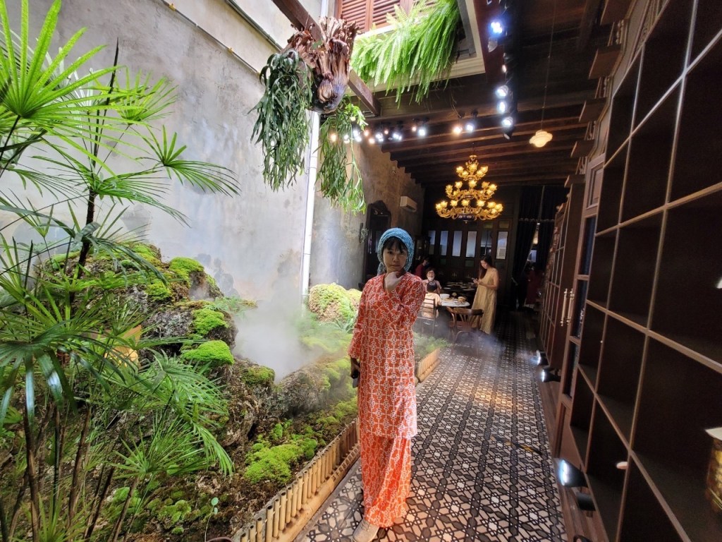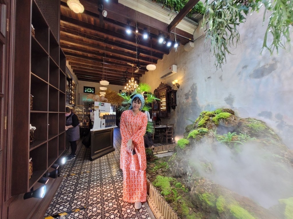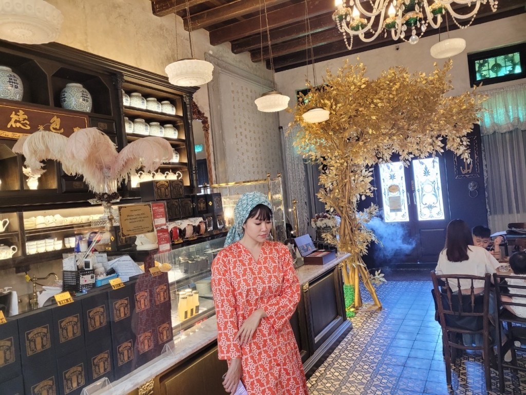 เราเริ่มมื้อเที่ยงที่ร้านน้ำชาติ่มซำสวย ๆ ที่ขึ้นชื่ออาหารอร่อย บรรยากาศดี ระหว่างทางก็สะดุดตาร้านเสื้อผ้าสีสันสะดุดตาร้านนึง เลยได้ชุดพื้นเมืองมลายูที่เรียกว่า Baju Kurung (บาจูกูรุง)คัตติ้งสวย ผ้าดี แพตเทิร์นงามมาใส่ ก็ฉลองด้วยการใส่เลยจะได้เข้าบรรยากาศค่ะ