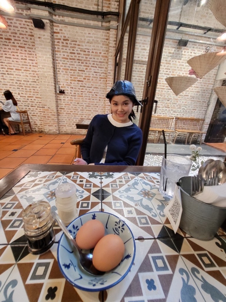 แต่ไม่ทันที่จะได้ทำอะไร ฝนก็ตกลงมาก่อน จากเม็ดเล็ก ๆ เริ่มลงหนัก ก็เลยรีบวิ่งเข้าร่ม หาที่กินก่อน ก็มาจบที่ร้าน Luckin Kopi ที่ดูแล้วคนเยอะหน่อย รีวิวก็โอเค ก็สั่งไข่ลวกกับ Kaya Toast มาทานกับกาแฟ เอาเพื่อรองท้องและหลบฝนค่ะ รสชาติก็พอโอเค