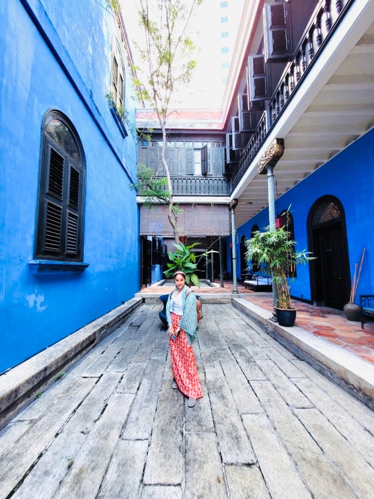 อิ่มท้องแล้วเราก็กลับโรงแรมไปเอากระเป๋าเดินทางค่ะ แล้วเรียกแกรบไปที่ Cheong Fatt Tze Mansion (เฉิงฟัตเจ๋อ) หรือ Blue Mansion ที่พักที่เป็นไฮไลต์หนึ่งของทริปนี้เลยค่ะ