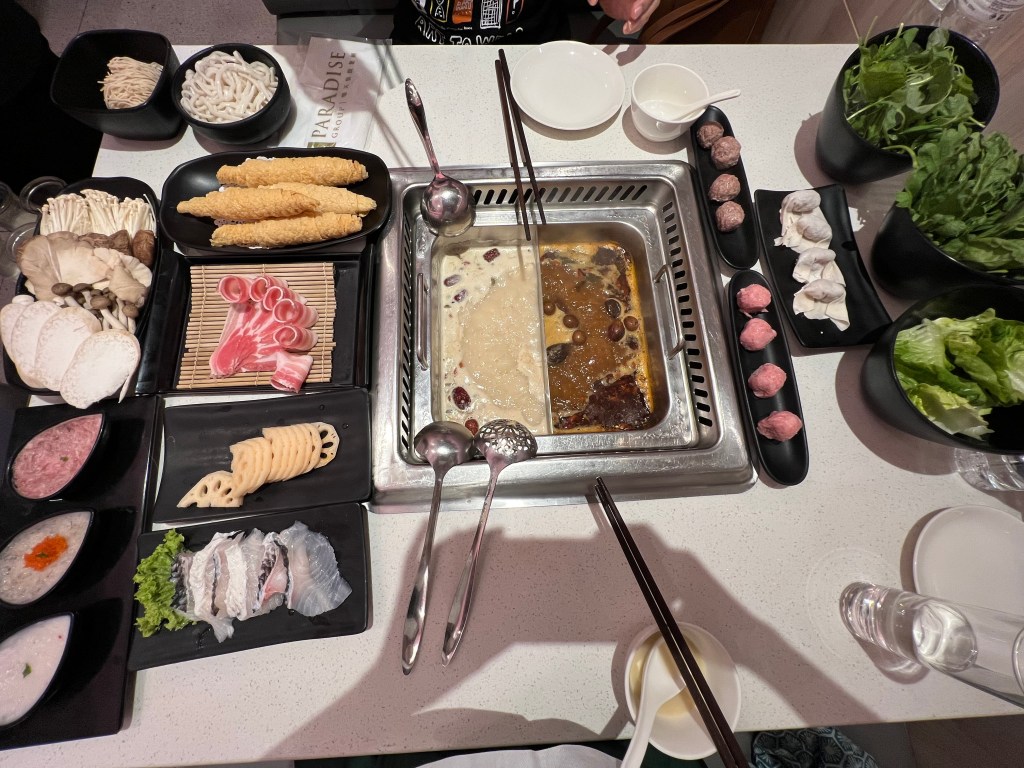 อร่อยมากกกกก เราเลือกแบบสองน้ำซุป เป็นคอลลาเจนหม้อนึง อีกหม้อเป็นหม่าล่า หม่าล่าเค้าไม่เผ็ดจัดหรือมันเกินไป กำลังนัวๆ อร่อยพอดีมาก