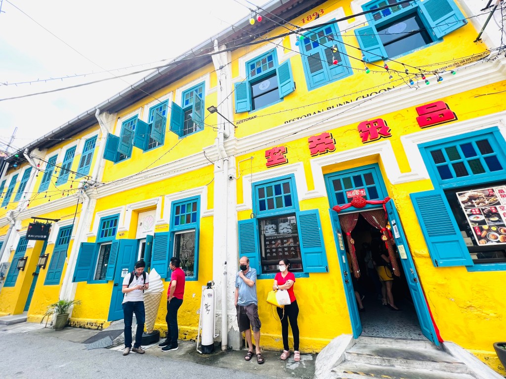 เมื่อวานตอนเรามาถ่ายรูปตรงร้านประตูสีเหลืองสดนั้นร้านปิดอยู่ จริง ๆ เป็นร้านอาหารที่ดังพอสมควร วันนี้เราเลยเปิดมื้อแรกที่ร้าน Kedai Biskut Bunn Choon เพื่อทานติ่มซำ และพายขนมปังโฮมเมด อร่อยมากๆ ค่ะ
